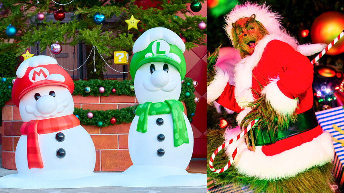 - Super Nintendo World: O mundo dos jogos de videogame ganha uma decoração natalina especial, com direito a uma árvore de Natal inspirada em Mario Kart e outros elementos temáticos.