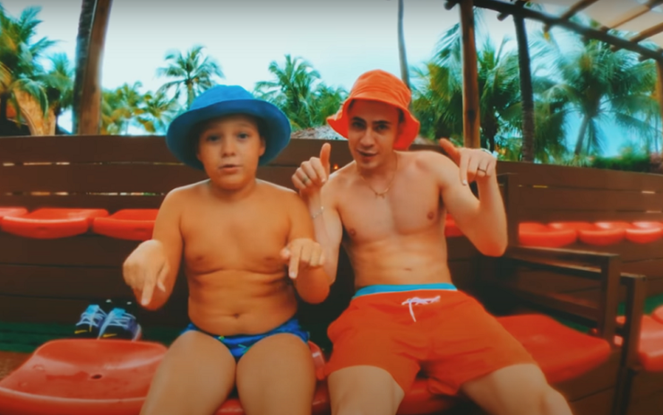 Leo Picon se diverte com filho de Neymar em parque aquático no clipe de ‘Jogador”